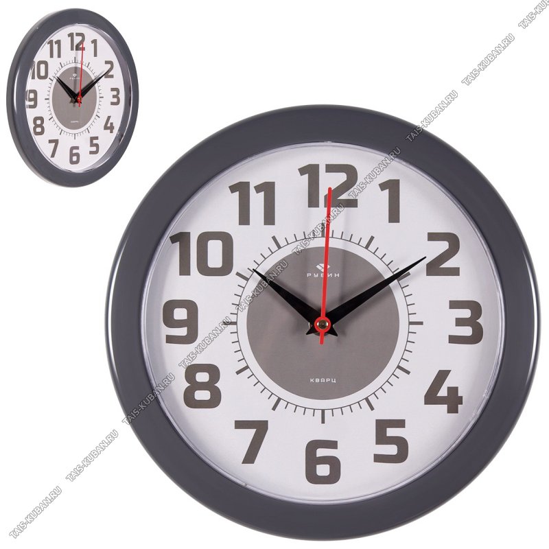 Часы (стекло/пластик) круглый d23см "Классика" темно-серый корпус