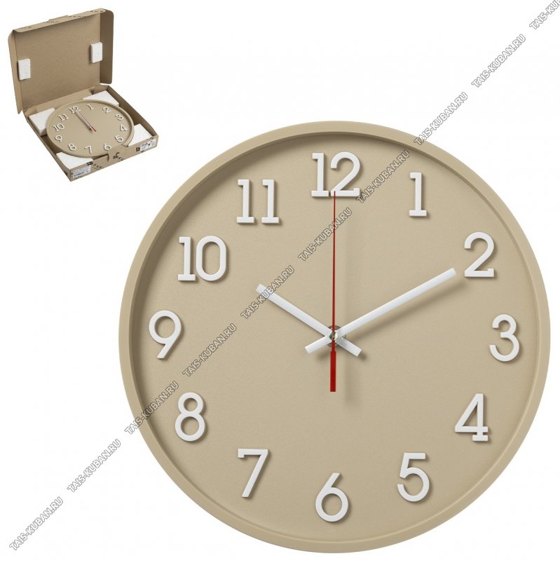 Часы (пластик) круглые d28см "Открытая стрелка" бежевый корпус,п/у (10) ТМ Рубин