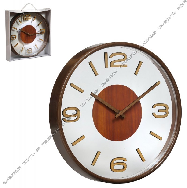 Часы (пластик) круг d30см "Стиль/Коричневый" п/дерево, бесшумный мех-зм (12)