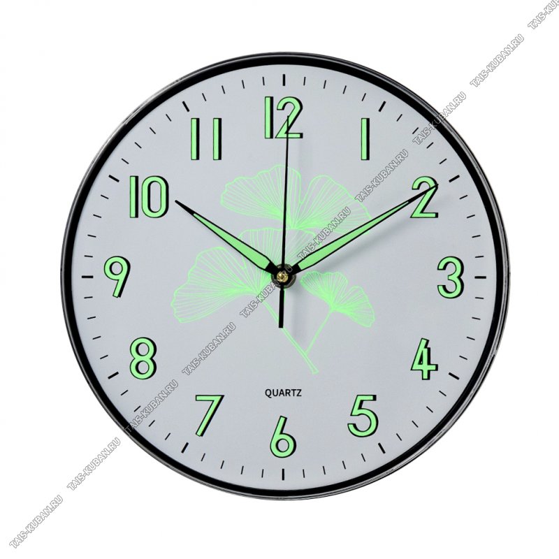 Часы (пластик) круглые d25см "Светящиеся" белый "узор Цветы" (10)