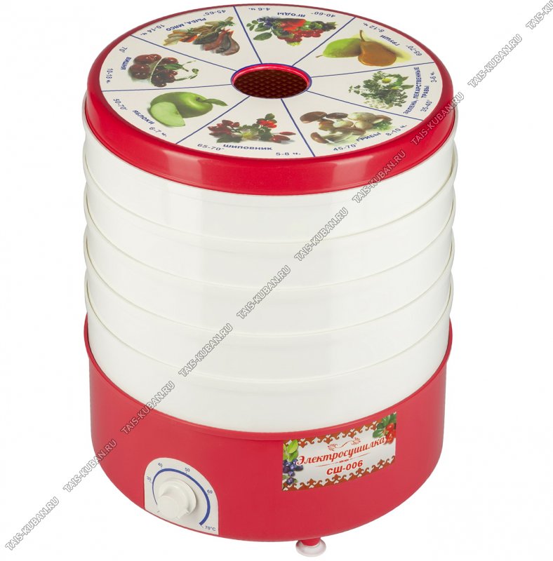 Сушилка д/овощей и фруктов эл. 17л "Чудесница" 520Вт,5 кругл.поддон,макс.t 70С`, терморег,защ.от перегр,пласт.корп,бел/красный,цв. упаков.