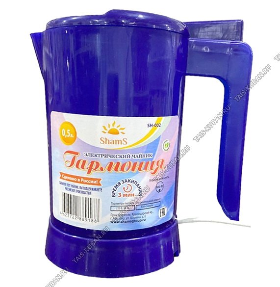 Чайник эл. (пластик) 0,5л 500Вт "Гармония" спираль, синий