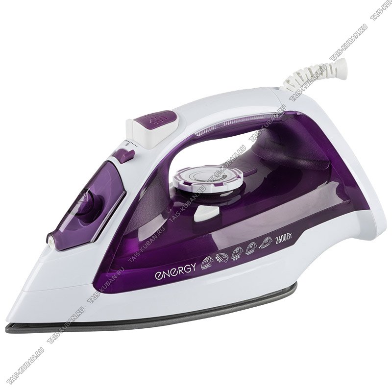 Утюг с керамической подошвой 2600Вт пар 23г/вода 350мл, вертикальное отпаривание, сухое глажение, спрей, функция самоочистки, цвет белый/фиолетовый (10)