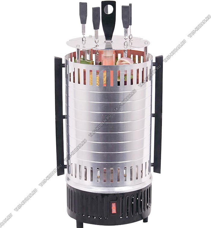Шашлычница эл.1000Вт 5шампур.с автовращ,загр.1кг,время пригот.15мин, защит.кожух, нерж./пищ.алюм.мат-л, съёмн.детали