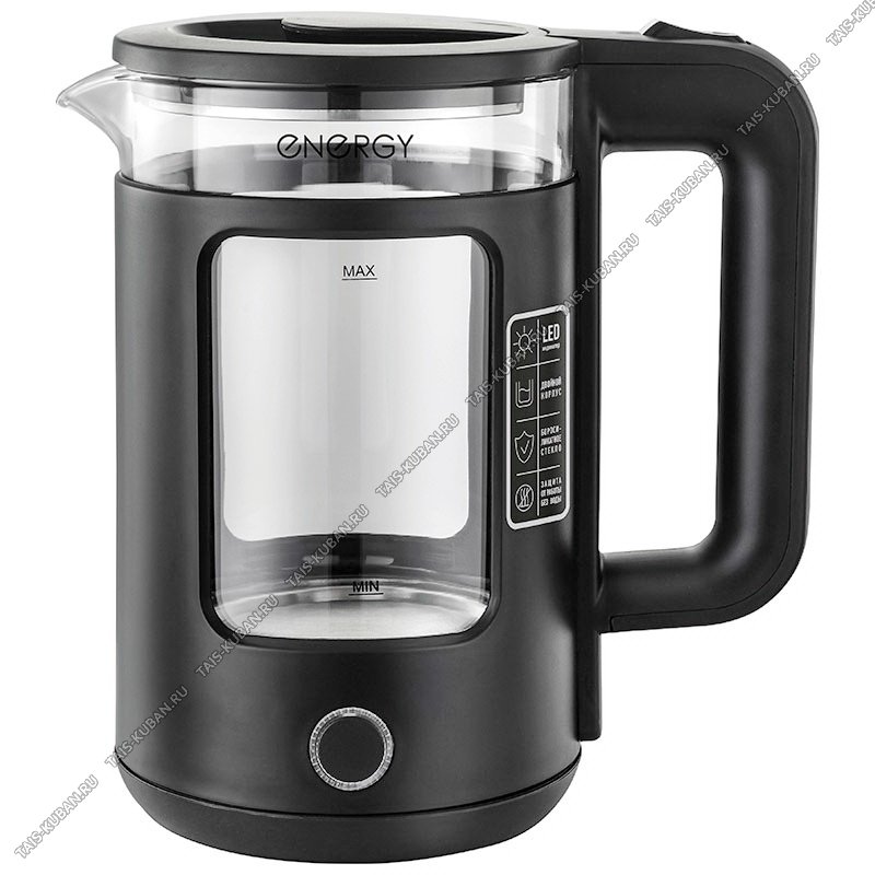 Чайник пластик+стекло 1,5л 1500Вт двойная стенка ( внутри-стекло), цвет черный (8)