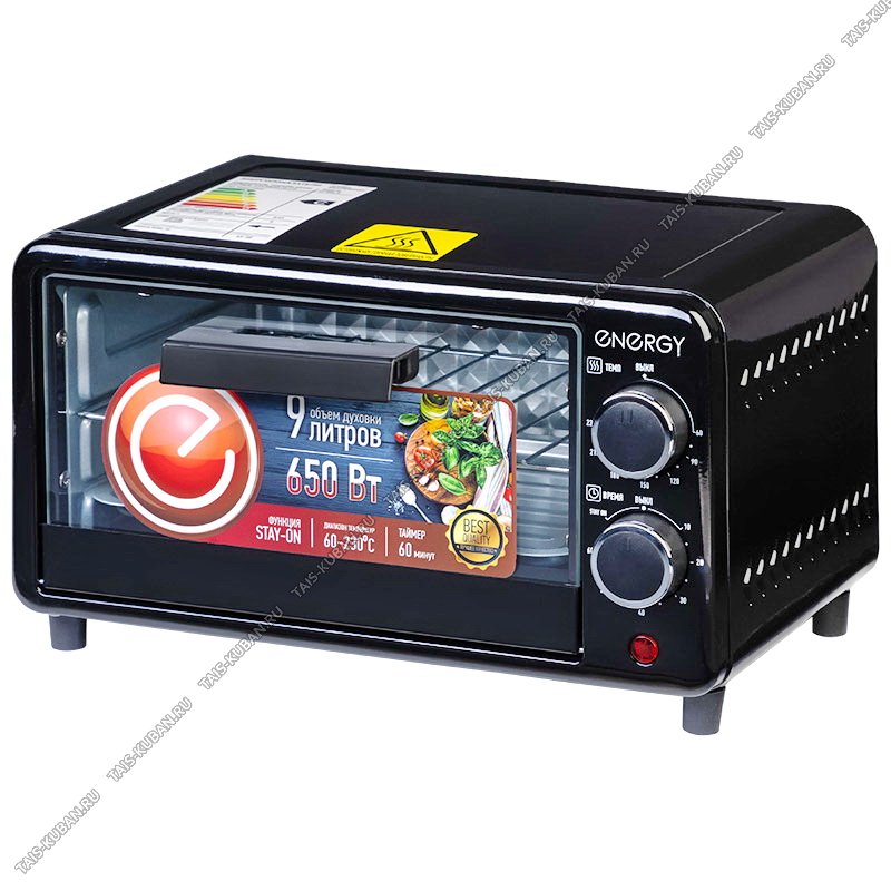Духовка 9л 650Вт,1реж,рег.t60-230,конвекция,решетка,противень,таймер, индик.работы,черный (1)