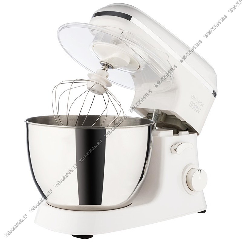 Миксер-тестомес планетарный с вращающейся нержавеющей чашей 5л 800Вт 5 скоростей ,3насад.(венчик,насад.д/теста,крюк,лопатка), прозрачная крышка, цвет белый (4)