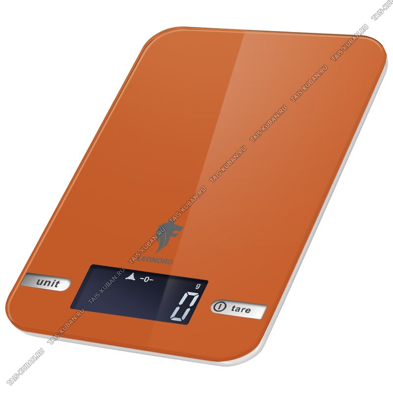 Весы кухонные эл. (стекло) до 5кг дел.1г, оранжевый(12)