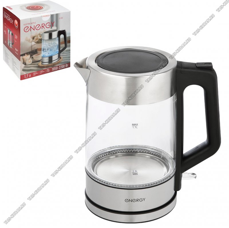 Чайник стекло 1,7л 2200Вт диск,автооткл,защ.от перегр. (6) Чайник стекло 1,7л 2200Вт диск,автооткл,защ.от перегр. (6)