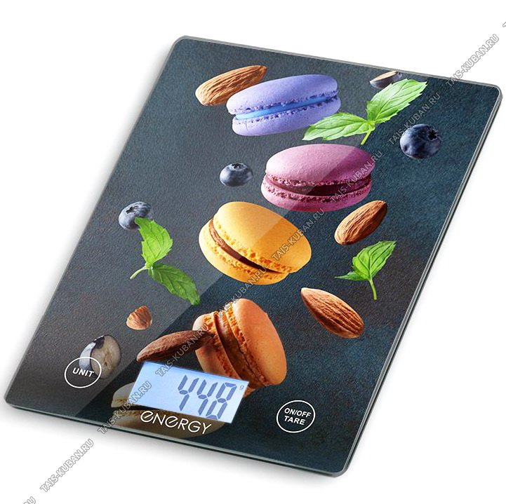 Весы кухонные эл. (стекло) до 10кг "Макаруны" дел.10г,ф-ия тара,LCD дисп, автооткл,пит.бат.CR2032(12)