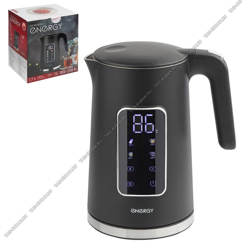 Чайник пластик+нерж 1,7л 1800Вт диск,2-ная стенка (внутри нерж.сталь), 4 t реж, автооткл,цифр.дисп,,защ.б/воды,свет.индик,вращ.360°,черный (12)