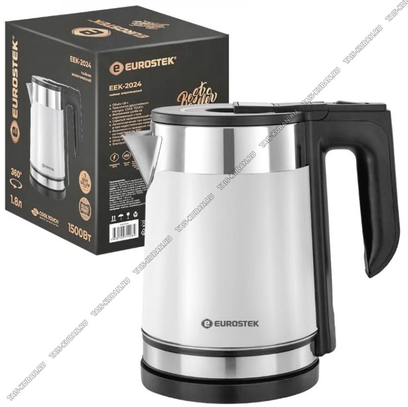 Чайник электрический «Eurostek» EEK-2024, 1500 Вт, Объем 1.8 л , Двойной корпус из нержавеющей стали и пластика, кнопка открывания крышки, шкала уровня воды, дисковый нагревательный элемент, световая индикация работы, вращения чайника на подставке наааа 360, автоматическое отключение при закипании и при недостаточном количестве воды.