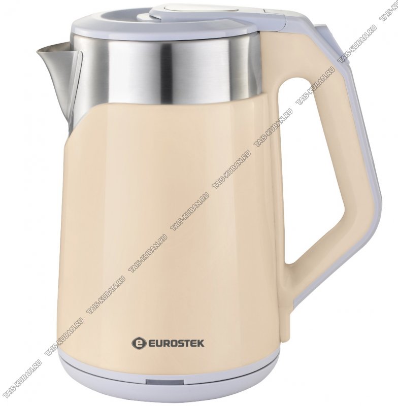 Чайник электрический «Eurostek» EEK-2027, 1500 Вт, Объем 1.8 л , Двойной корпус из нержавеющей стали и пластика, кнопка открывания крышки, шкала уровня воды, дисковый нагревательный элемент, световая индикация работы, вращения чайника на подставке нааааа 360, автоматическое отключение при закипании и при недостаточном количестве воды.