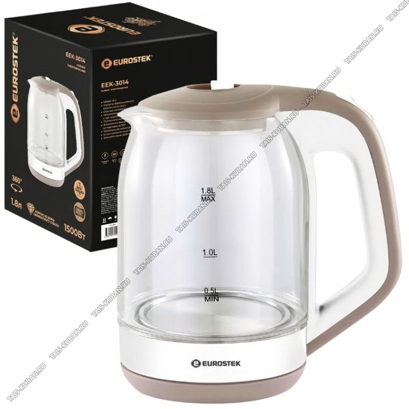 Чайник стекло 1,8л 1500Вт диск, автоотключение, цвет белый/бежевый (12)