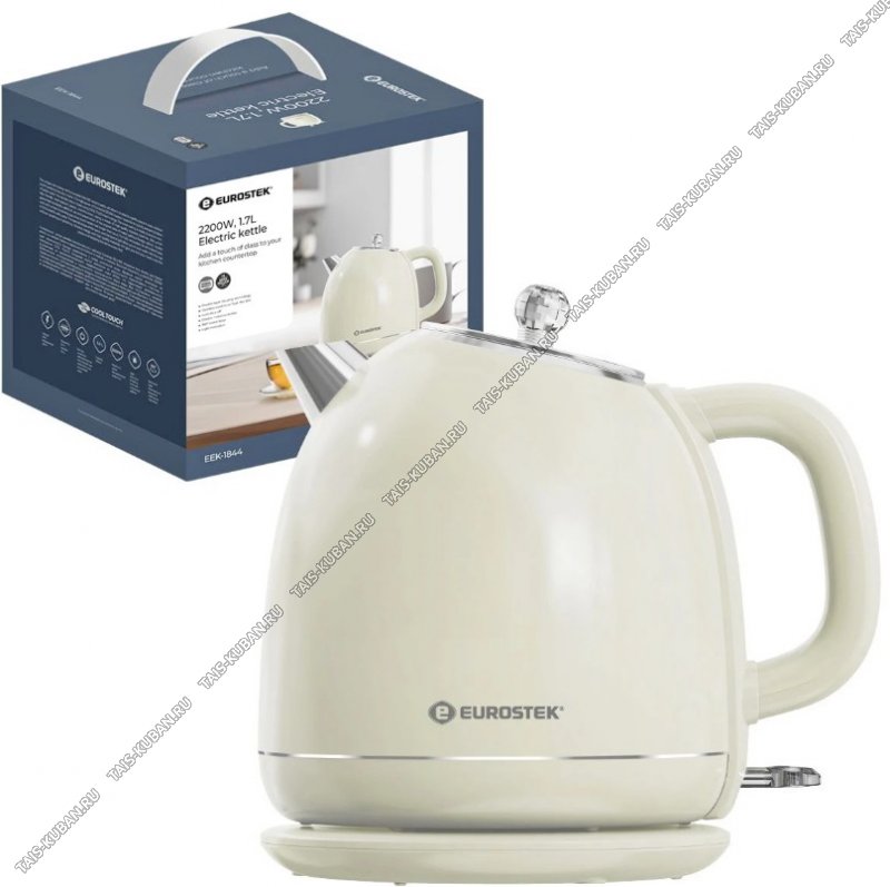 Электрический чайник Eurostek EEK-1844Объем 1,7 л , мощность: 2200 Вт, технология двухслойного корпуса COOL TOUCH, дисковый нагревательный элемент, длина шнура 0,9 м, световая индикация работы, вращения чайника на подставке на 360, автоматическое оооотключение при закипании и при недостаточном количестве воды.