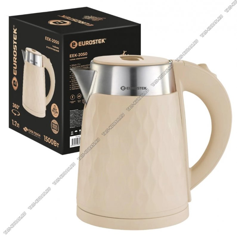пластик+нержавеющая сталь,диск,2-ная стенка,автоотключение,вращающийся корпус на 360°, рельефный корпус,бежевый Eurostek