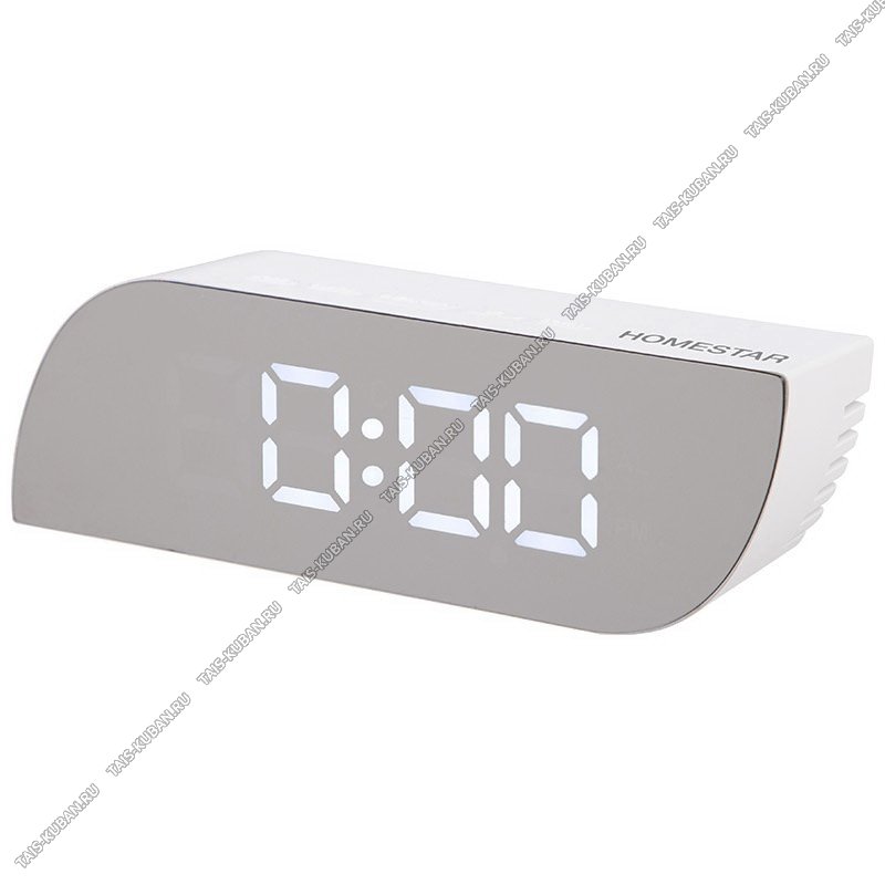 будильник, дата, показатель температуры по Фаренгейту и Цельсию, 2 режима яркости, ночной режим, цвет белый, работа от батареек ААА 3шт (не входят в комплект), подарочная упаковка (50)