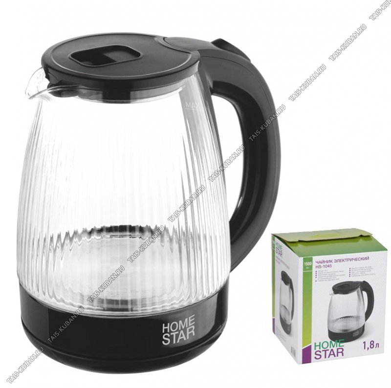 Чайник стекло 1,5л 1500Вт диск, волнистый корпус, черный/сталь (12) Чайник стекло 1,5л 1500Вт диск, волнистый корпус, черный/сталь (12)