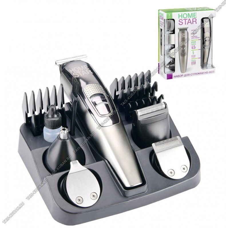 (триммер, насадка для стрижки 2шт, насадка для усов,бровей,бакенбард, регулировка длины 3/6/9/12), продолжительность работы 45мин, в комплекте USB-провод, щеточка, масло