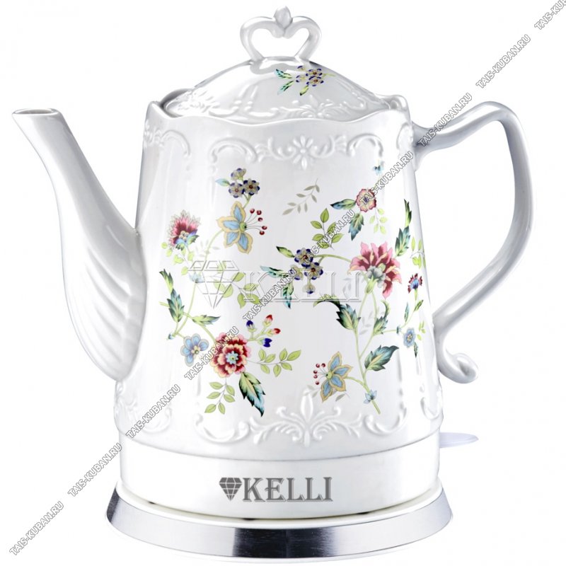 Чайник керамич. 1,7л 2200Вт диск,автооткл,защ.от перегрев, свет.индик, повор.на 360`,резной узор на корпусе, "Цветы" белый (12)
