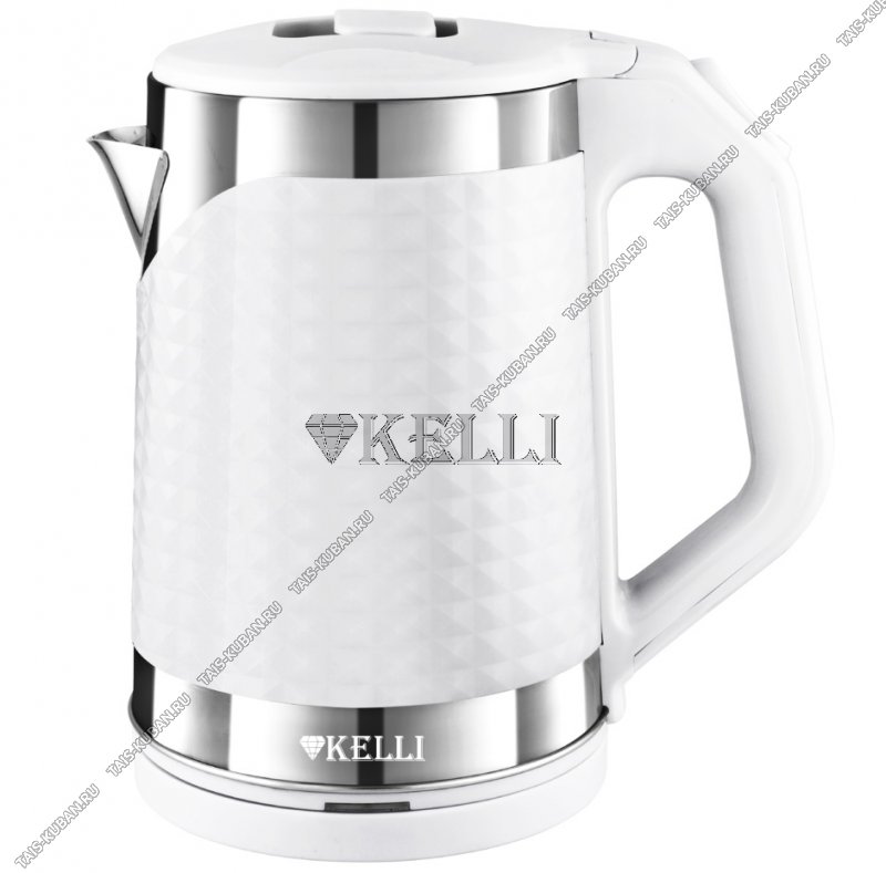 Чайник Ромб пластик+нерж. 1,8л 2200Вт диск,2-ная стенка (внутр-нерж.сталь), автооткл,защ.б/воды,вращ.на 360°,фактурн.корпус,белый