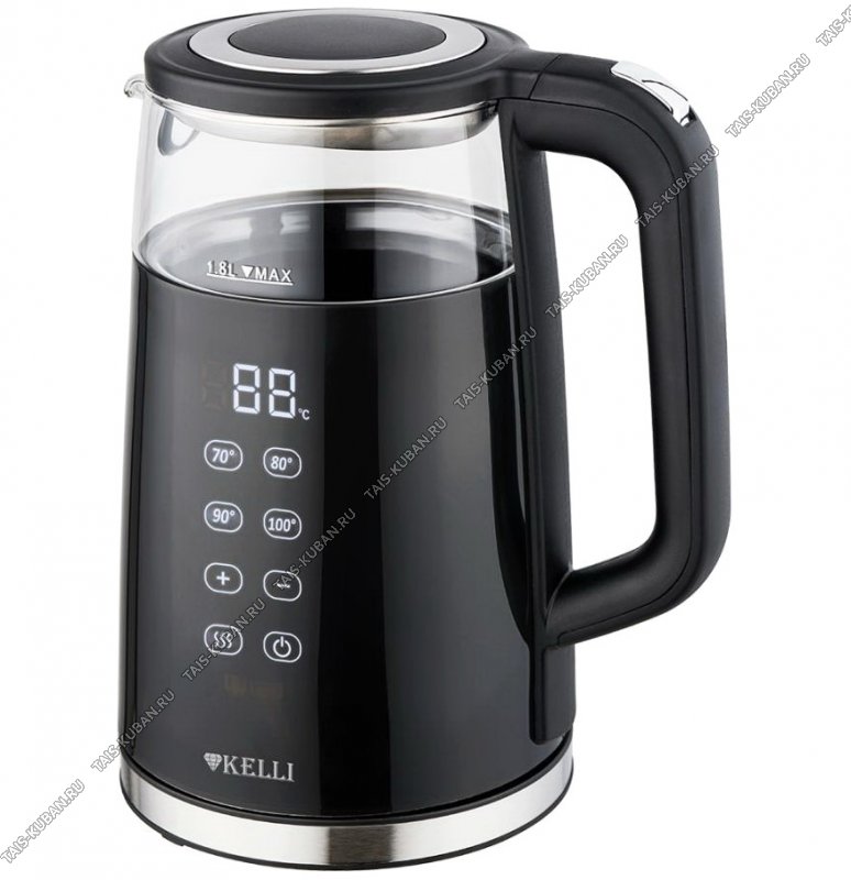 Чайник стекло + пластик 1,8л 2200Вт диск, сенсорное управление, функция поддержания t, автоотключение, защита без воды, вращение корпуса на 360°, цвет черный (12)