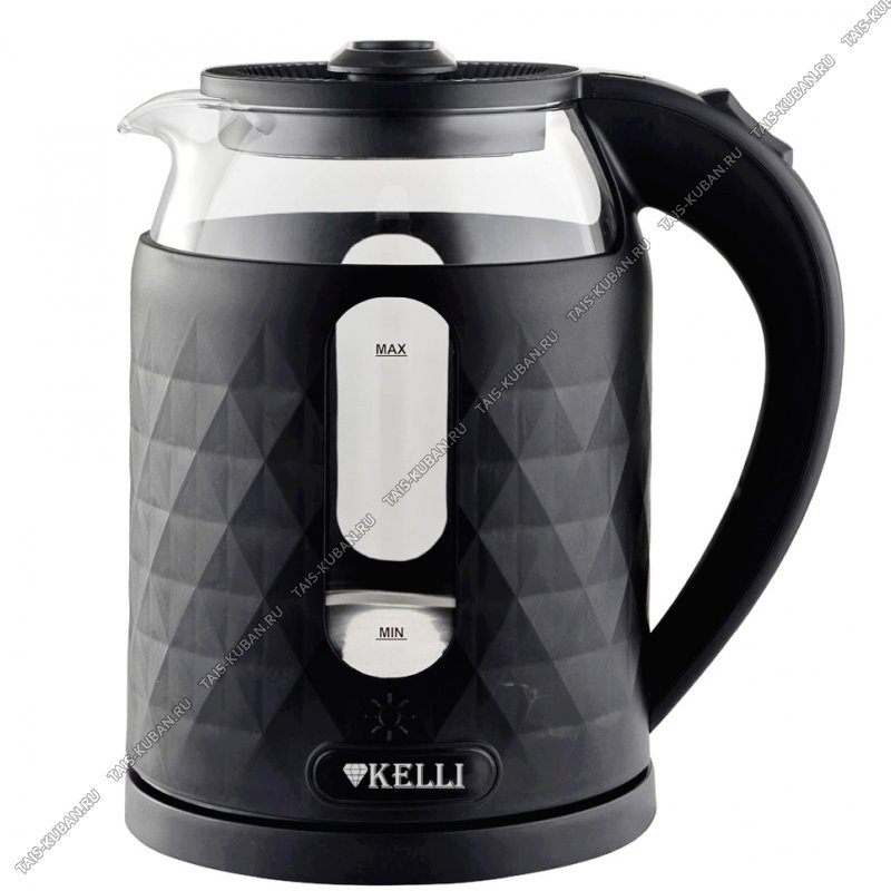 Чайник стекло + пластик 1,8л 2200Вт диск, автоотключение, фактурный корпус, цвет черный (12)