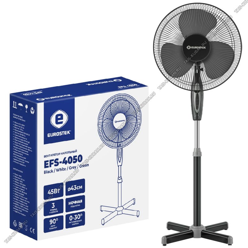 Вентилятор напольный EUROSTEK 45Вт .черный в индивидуальной упаковке,d43см (4)
