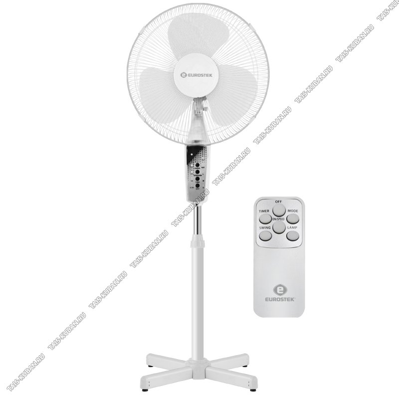 Вентилятор напольный EUROSTEK 45Вт,пульт управ, белый в упаковке 4шт,d43см,3скор,бесшумн,ночн.подствет,регулир.высоты до 125см,регулир.наклон,поворот на 90°, отгрузка по 4шт (цена за 1шт) (4)