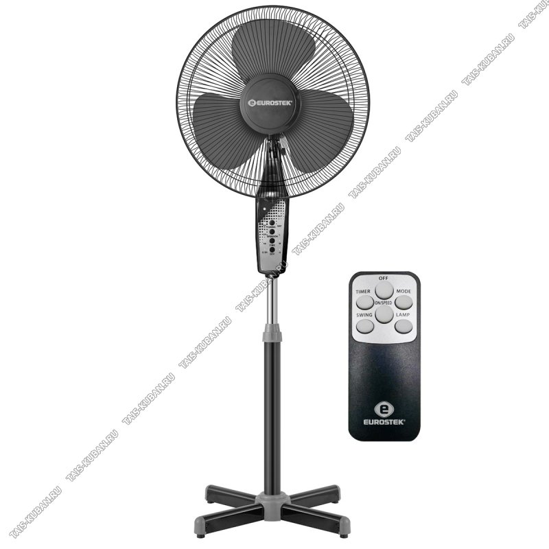 Вентилятор напольный EUROSTEK 45Вт, пульт управ, чёрн в упаковке 4шт,d43см,3скор,бесшумн,ночн.подствет,регулир.высоты до 125см,регулир.наклон,поворот на 90°, отгрузка по 4шт (цена за 1шт) (4)
