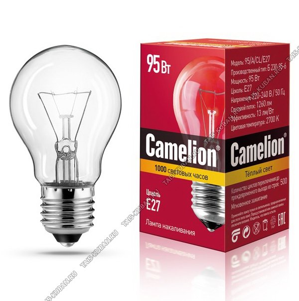 Camelion накалив. (груша) прозр Е27 95Вт,светов.поток 1260Лм (h90 d50мм) (10)