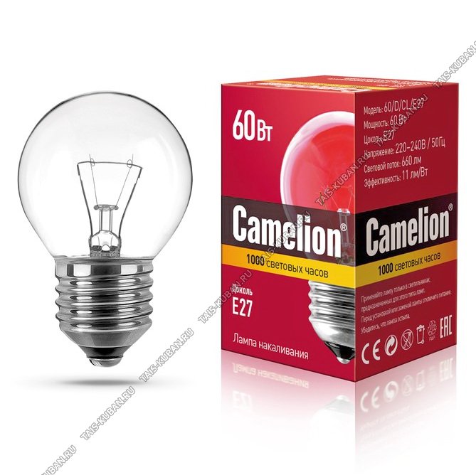 Camelion накалив. (шар) прозрачн. Е27 60Вт (h75 d45мм) (10)