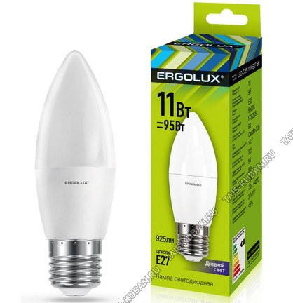 Ergolux-Свеча E27 11Вт,нейтральн.(дневн) 4000Вт,светов.поток 1070Лм (аналог 95Вт обыч.лампы) h101 d37мм (10)
