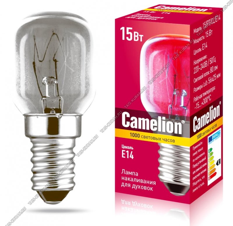 Camelion накалив. (д/духовок) прозр 15Вт Е14,светов.поток 80Лм (56x25мм) (10)