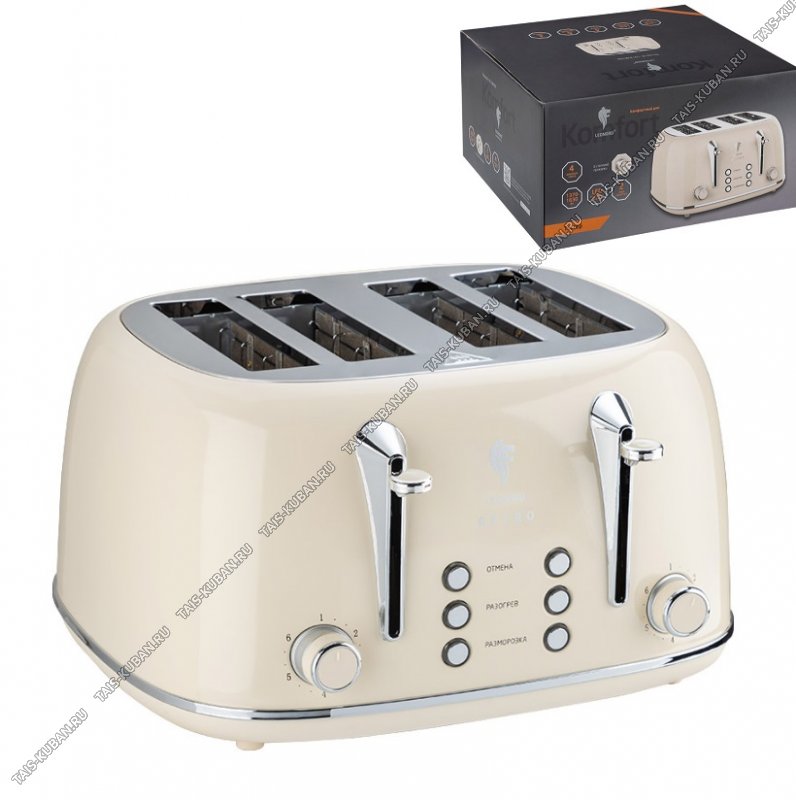 Ретро крем Тостер 1630Вт. 6 степеней поджаривания (3)