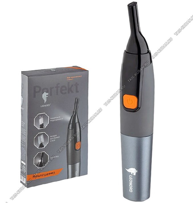 Триммер д/носа,ушей и бровей (акум) 2Вт, нержав.лезвие,подсвет,защит.копачок, щетка д/очист, прорез.корп.SoftTouch,графит (90)