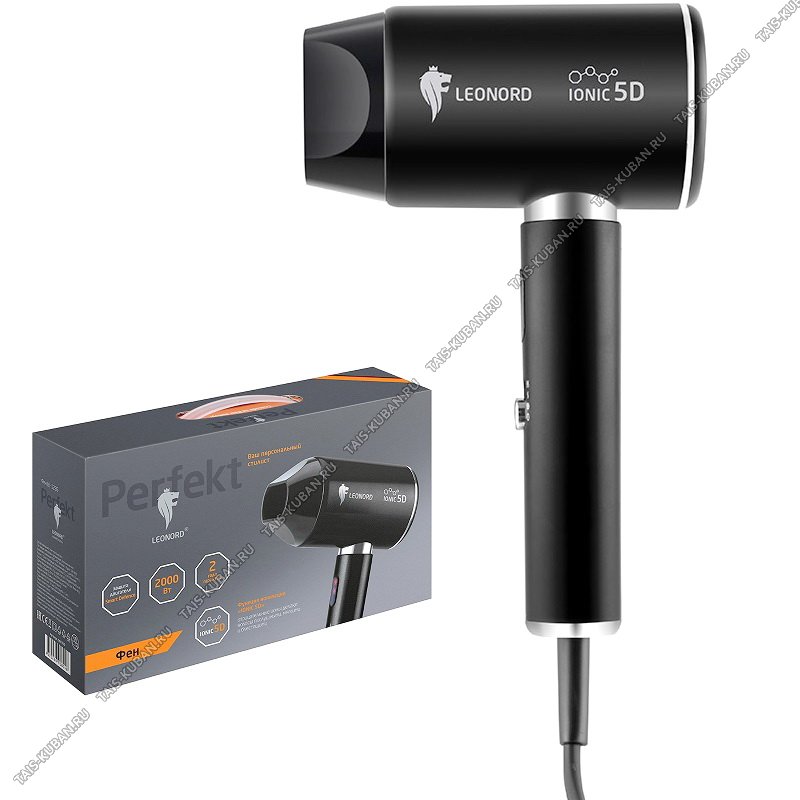 Фен 2000Вт 2ск,3t реж,"холодн.воздух",LED дисп, ф-ия ионизации,концентр,шнур 1,8м,черный (10)