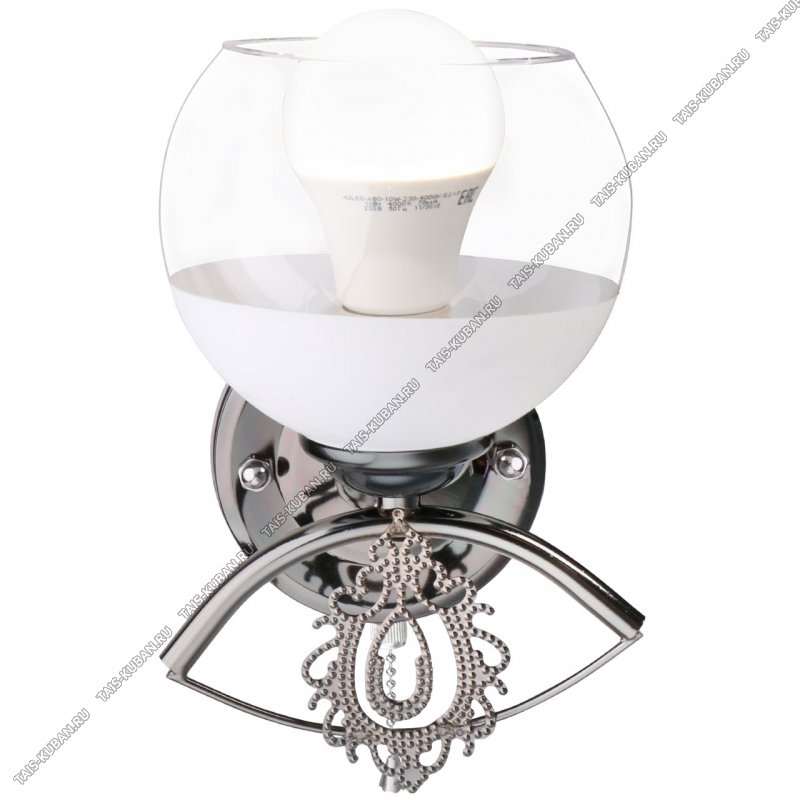 Бра Бра "Леандра" 1рожк (стекло), бел.матов+прозрач/хром (60W E27) (12)