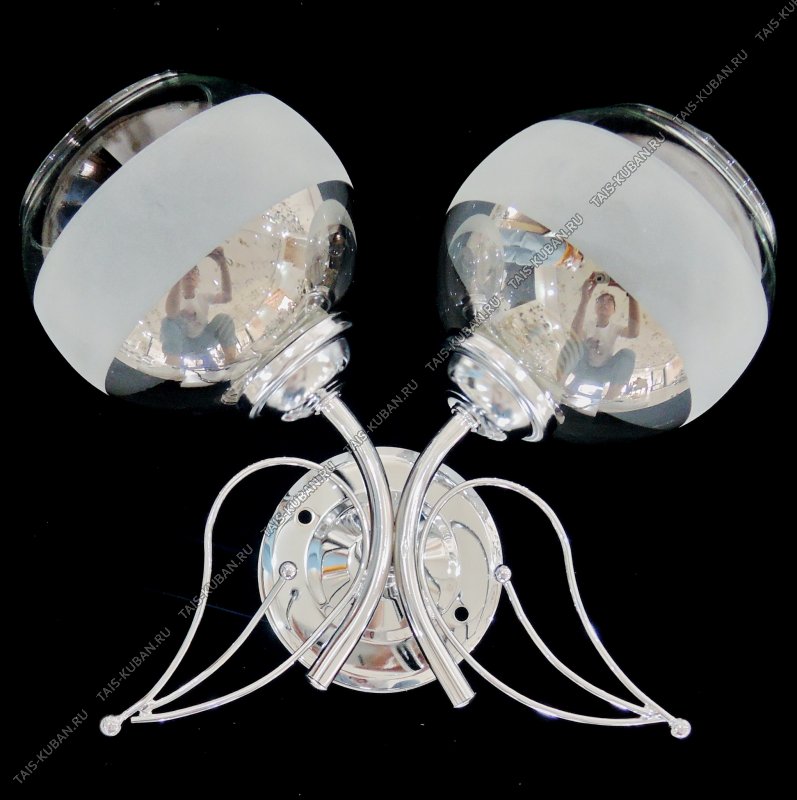 Бра "Томила" 2рожк (стекло), прозрач+бел.матов/серебро (60W E27) (12)