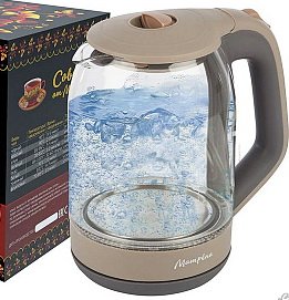 Чайник стекло 1,8л 1500Вт диск,повор.360, внутр.подсвет,автооткл,защита б/воды,бежевый (12)