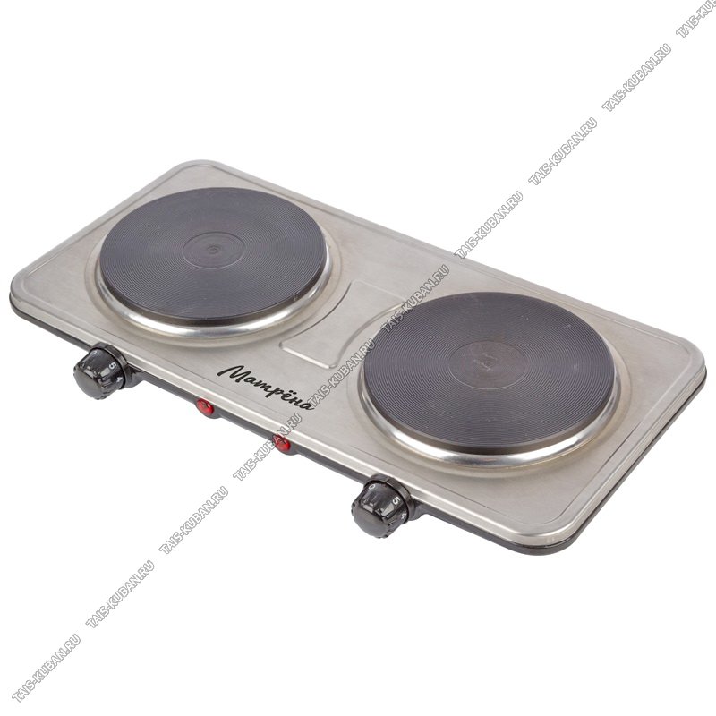 Плита электрическая нержавеющая сталь/2конфорки БЛИННАЯ d15,5/d15,5см, 1000ВТ+1000ВТ,терморегулятор, защита от перегрева,серебро,карт/уп