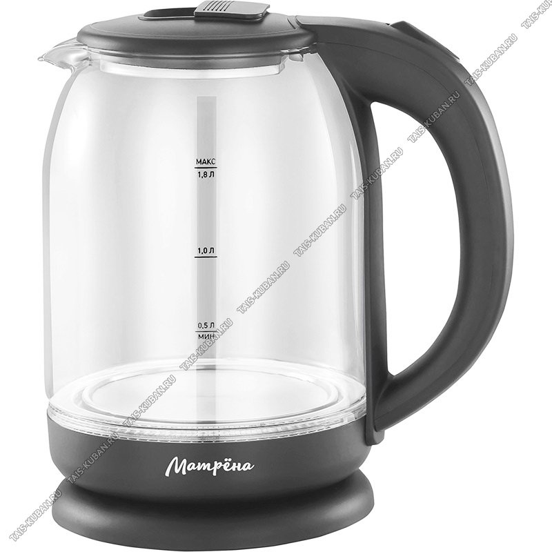 Чайник стекло 1,8л 1500Вт диск,серый (12)