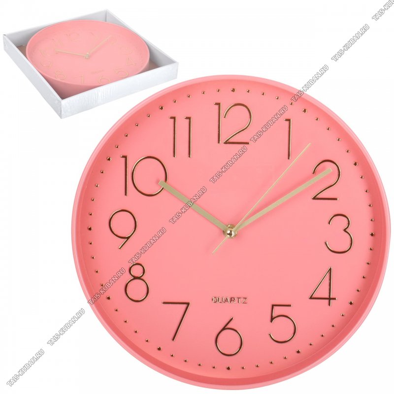 Часы (пластик) круг.d30см "Модерн" коралл,цифры золото, п/у (30)