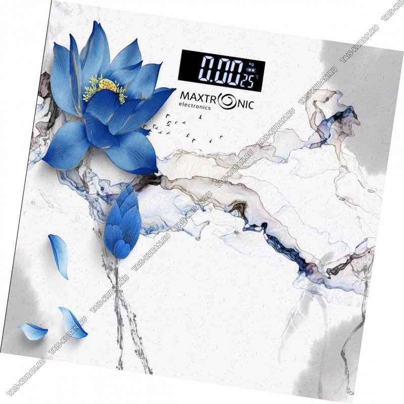 Весы напольн. эл. до 180кг дел.100гр "Лотос синий" закал.стекл,платформ.30x30см,LCD-диспл.45х30мм,индик.заряд.бат,автооткл,пит.2*ААА (10)