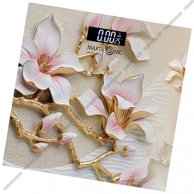Весы напольн. эл. до 180кг дел.100гр Весы напольн. эл. до 180кг дел.100гр "Маки бело-золотые" стекло,30x30см (10)