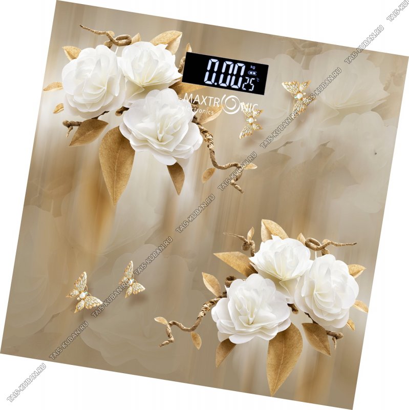 Весы напольн. эл. до 180кг дел.100гр Весы напольн. эл. до 180кг дел.100гр "Маки бело-золотые" стекло,30x30см (10)