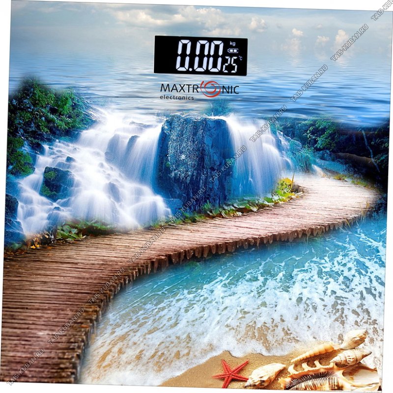 Весы напольн. эл. до 180кг дел.100гр Весы напольн. эл. до 180кг дел.100гр "Водопад на закате" стекло (10)