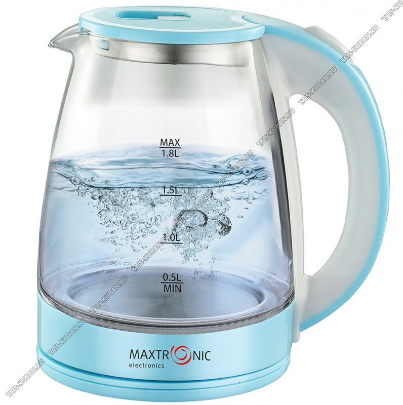 Чайник стекло 1,8л 1800Вт диск, внутренняя подсветка, автоотключение, защита без воды, вращение корпуса на 360°, цвет голубой/белый 12)