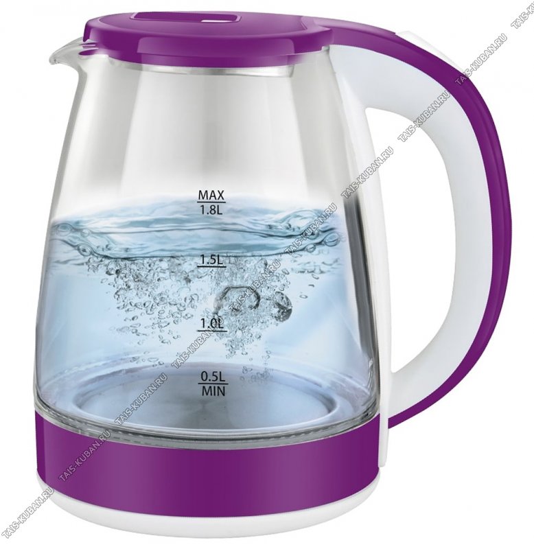 Чайник стекло 1,8л 1800Вт диск,внутр.подсвет,автооткл,защ.б/воды,вращ.на 360°,фиол/белый (12)