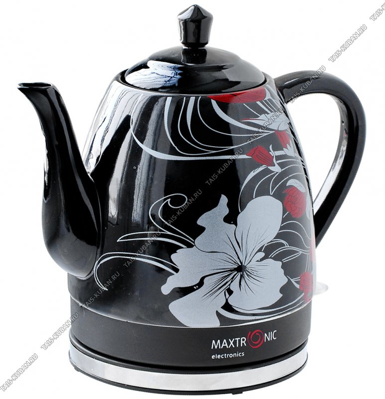 Чайник керамич. 1,6л 1800Вт диск,автооткл,защ.б/воды,вращ.на 360° "Цветы",черный (8)